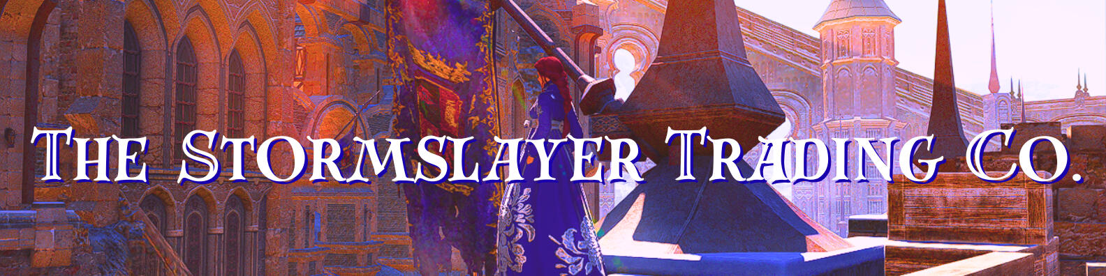 Founded in the waning days of the Dragonsong War, the Stormslayer Trading Company was born of Ishgardian resolve. It now endures beneath the steady hand of the Lady Ophelia Fortemps-Stormslayer, who saw fit to carry forth her family's dreams—to unite artisans and traders under a single banner of integrity and purpose.Now headquartered upon the sunlit coasts of La Noscea, the Company thrives as a conduit of commerce and camaraderie. From the mines of Thanalan to the forges of Ishgard, and the bustling ports of Limsa Lominsa, The Company deals in fine goods, raw materials, and masterful craftsmanship, employing some of the most skilled hands and keenest minds across all of Eorzea.Here, one's worth is not measured by title or birthright, but by the craft of their hand and the strength of their word. Whether noble or commonborn, all who labor in honesty and heart find welcome within our ranks. For trade, after all, is the truest bridge between souls—and through it, we forge not only prosperity, but legacy.